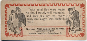 Estas tarjetas, ofrecidas fuera de los circuitos sociales, eran muy discretas y solían contener un código por el que, generalmente la dama, solía aceptar o rechazar la invitación. Pocos hombres eran los que se negaban a entregar a la criatura de sus deseos, este tipo de papeles.