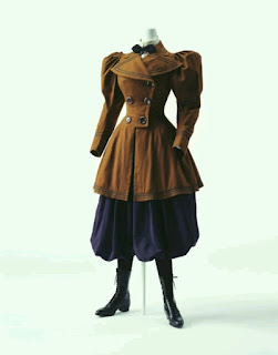 Hacia 1890 finaliza el imperio del polisón y nace lo que se ha venido denominando "traje sastre" que anticipa el periodo eduardiano inglés (llamado así por el príncipe Eduardo, posteriormente rey a la muerte de su madre Victoria) o Belle Epoque. La mujer comienza a interesarse por los deportes: sale a pasear en bicicleta, juega al tenis, a darse baños de agua en el mar y a pasear con un traje de tres piezas: falda recta con más o menos vuelo pero sobre todo funcional, camisa de cuello alto y chaqueta.