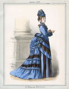Es el vestido con el que se identifica actualmente a la dama del siglo XIX y del periodo central de este siglo, coincidiendo con el esplendor del Imperio británico y de la era victoriana. Precisamente, debido a la actitud moralizante de la reina, que se exportó creando una serie de normas reguladoras del comportamiento que debía seguirse, los escotes de los trajes de paseo son elevados, la longitud del vestido tan largo que no deja ver si quiera el zapato y el negro se impuso como el color elegante que toda viuda debía llevar.