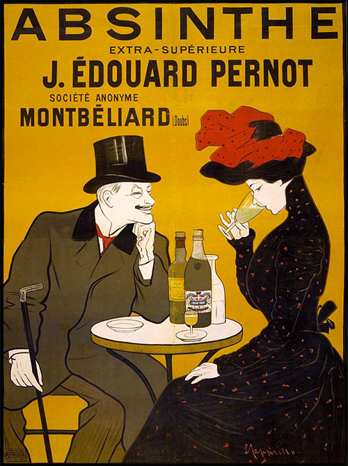 En la década de 1840 la bebida se ofrecía a los soldados franceses como antipirético medicinal para bajarles la fiebre, y en 1860 muchos cafés y bares parisinos la aconsejaban ya para tomarla a las 5 de la tarde, sustituyendo a la “hora del té” británico en la llamada “hora verde”. Lo cierto es que ya fuera como remedio saludable (se hablaba de que "resucitaba incluso a un muerto") o como bebida energética, fue en la década de 1870 cuando gracias al auge del cartelismo comenzó a alcanzar una publicidad impresionante y a anunciarse masivamente. Los dibujantes jugaron sobre todo con su color verde manzana y con la figura de una mujer sensual que ofrecía magia a quien la bebiera pues su alto contenido de alcohol proporcionaba embriaguez y en algunos casos, alucinaciones debido a su graduación.