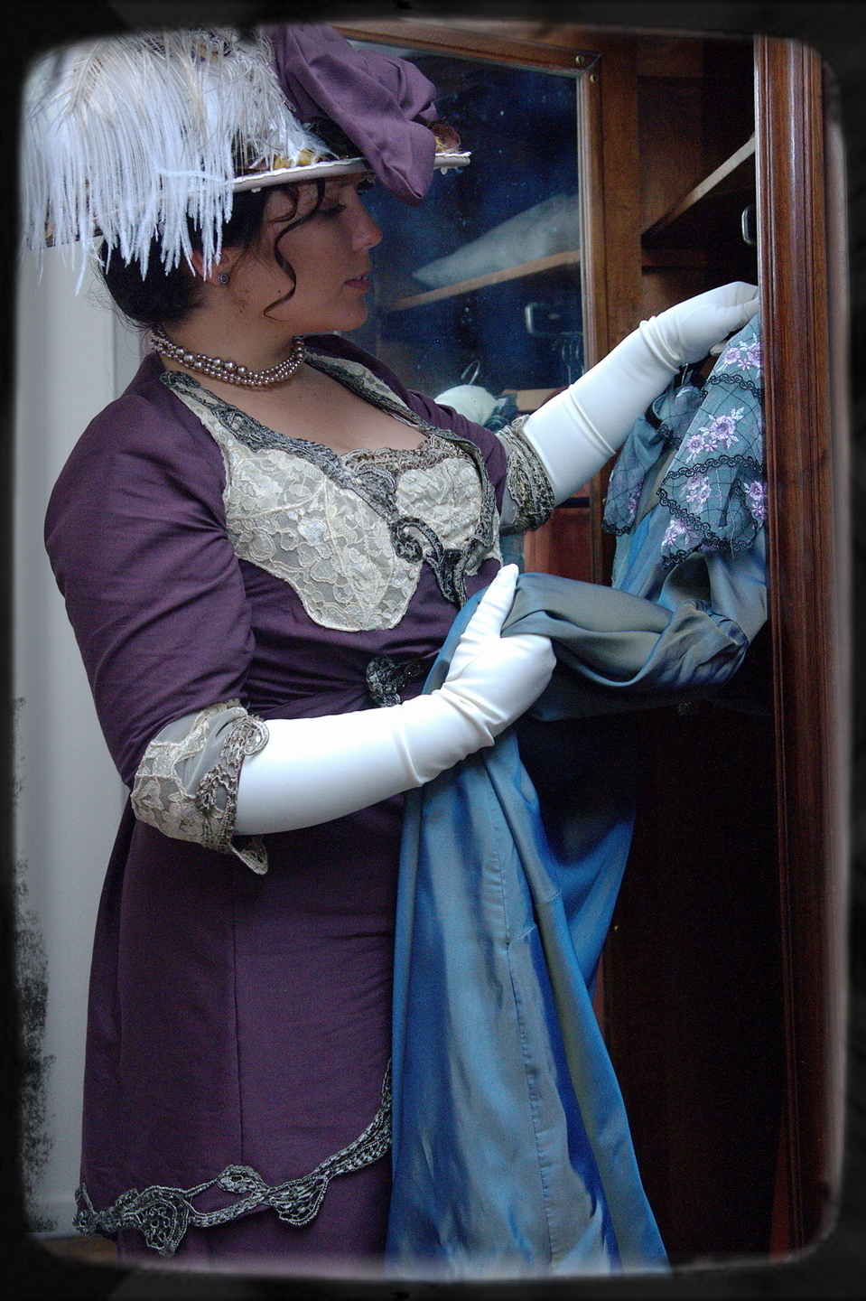 Pero no solo es nuestro peinado: también es el sombrero, los guantes, los zapatos o los pendientes. Aquellas personas que han invertido tiempo desde el principio de la elaboración del traje, el mismo empeño en investigar los peinados y accesorios saben que una coleta está fuera del marco histórico, así como usar pendientes al azar, poner en sus manos guantes de puntilla en el marco erróneo, usar cuero moderno o sombrillas con puntillas de cualquier color compradas en tiendas de boda.