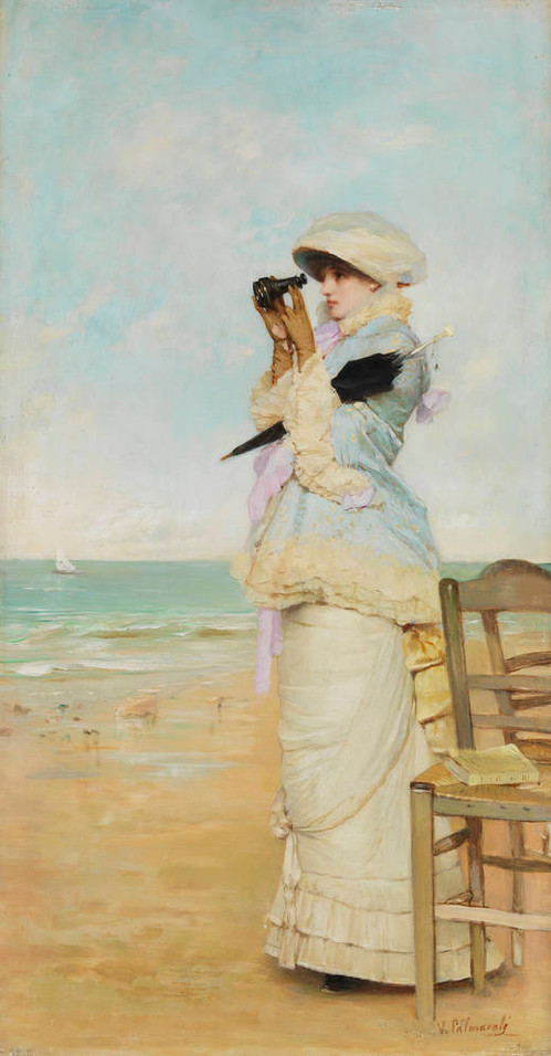 Autor poco conocido y aún menos estudiado (solo se ha publicado una biografía sobre él, "Vicente Palmaroli" de Rosa Pérez y Morandeira, tesis doctoral de 1958 publicada luego en 1971 por el CSIC), el Museo del Prado y otros museos de provincias conservan bastante obra suya, siendo un gran cronista de su tiempo y reflejando temas muy decorativos y atrayentes para la sociedad del momento, que demandaba cuadritos "de salón" de estética intimista y escenas cotidianas.